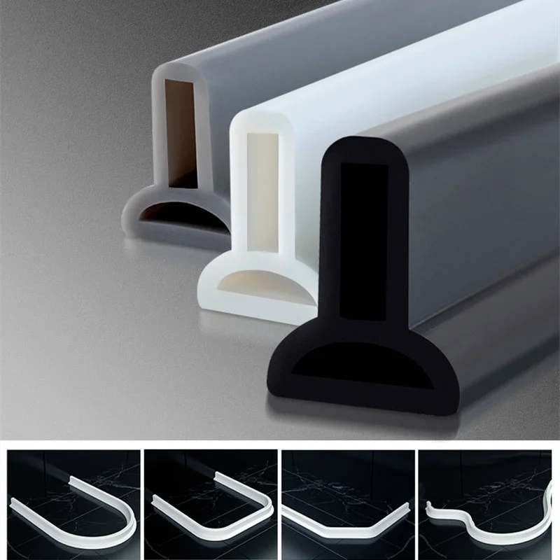 3M Silicone Bathroom Water Stopper Blocker Shower Dam Dry And Wet Separation Flood Barrier Non-slip Door Bottom Sealing Strip Features: 100% Brand new & High quality The long, flexible design creates all sorts of shapes. Shower barrier and retention system keeps water inside the threshold. Ideal for curbless showers and other areas where water needs to be contained. Material:Silicone Color: white/black/grey Package Included: 1 x Water Stopper(Length depends on your choice.)
